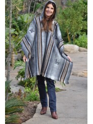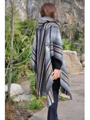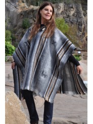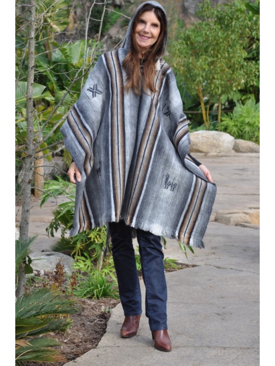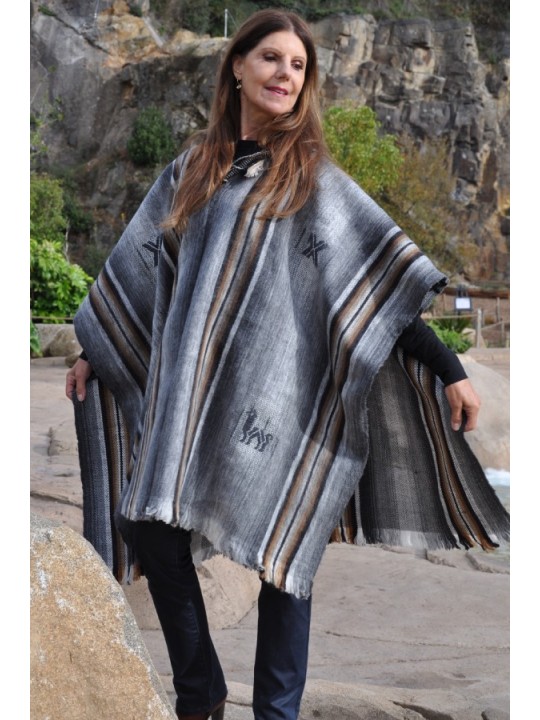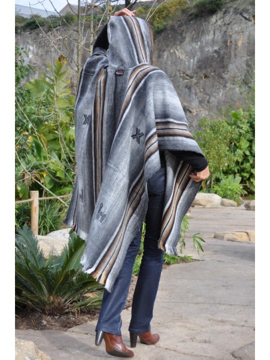 Exclusif, poncho rustique gris Huascaran 100% laine d’alpaga, ponchos pour femme, tissé main.