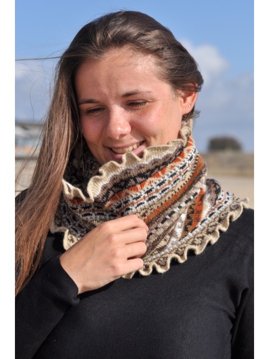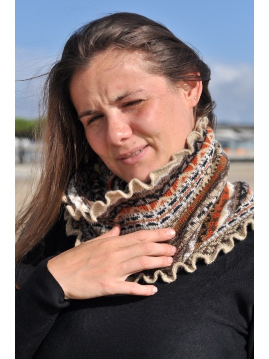 Snood artisanal en fine laine d’alpaga, alliant douceur soyeuse, chaleur légère et élégance naturelle.
