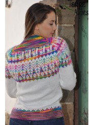 Sa couleur blanc neige, inspirée de l’éternelle blancheur des Andes, est sublimée par des motifs colorés typiques du haut plateau péruvien, apportant une touche d’originalité et de tradition.
